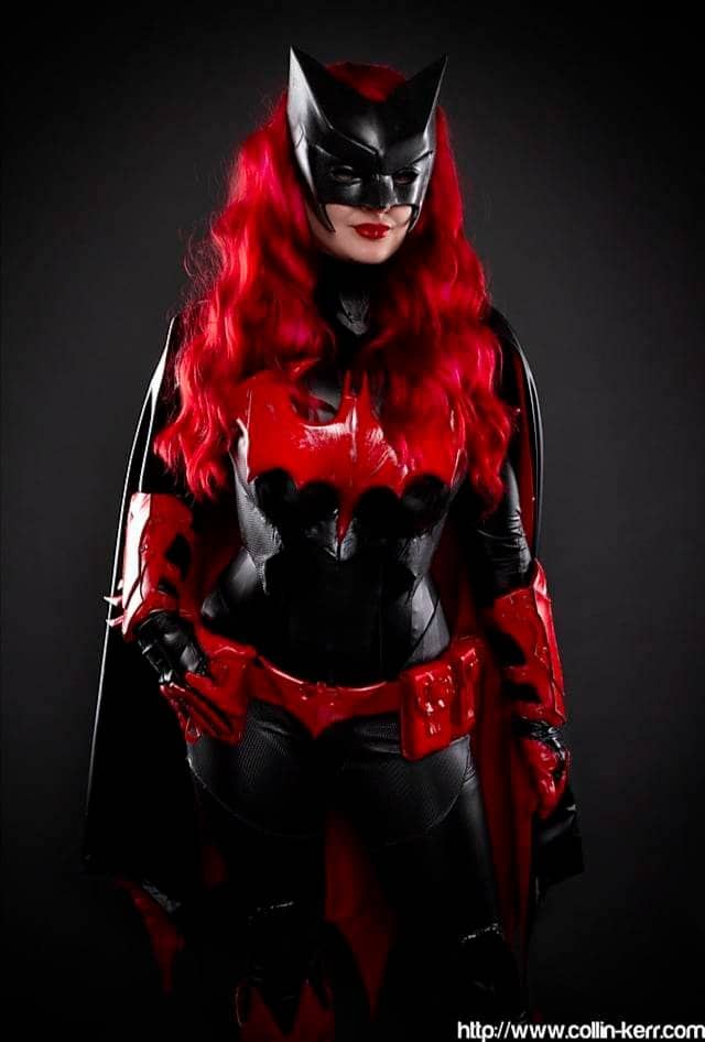 This Batwoman cosplay is from Carastrophic_Creates! Collin Kerr is the photographer for this piece. Plastic was molded by the crafter, and leather and carbon fibre were hand-sewn into this piece. The bodysuit was also sewn by the crafter when retail options weren’t good enough for the piece.