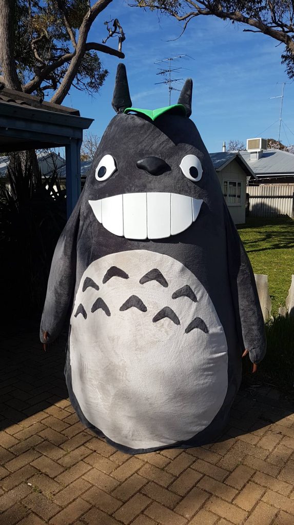 This is Totoro from the beloved My Neighbour Totoro anime was hand-built and has electronics that allow the wearer to see outside! Source: Terranous