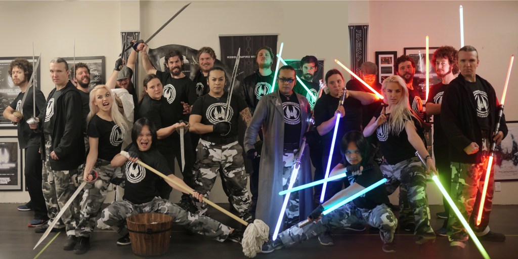 This is Rebel Empire Workshops, who put on high quality lightsaber and swordplay choreography performances!